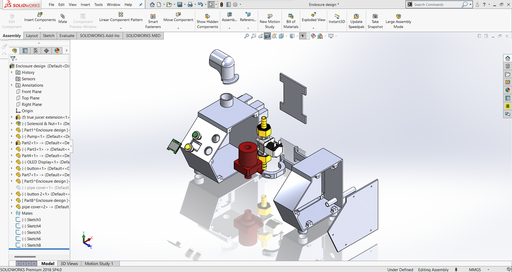 1-Design the Enclosure for the juicer extension that can house and fix the extra PCC, pump, Solenoid valve and other parts needed for the juicer machine to Function.