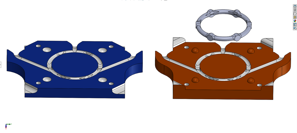 These plastic molds were designed in SolidWorks. Due to the small diameter of the ring and high viscosity of the casting plastic, I needed to make special design so that the liquid reaches all around as you can see in the pictures attached.